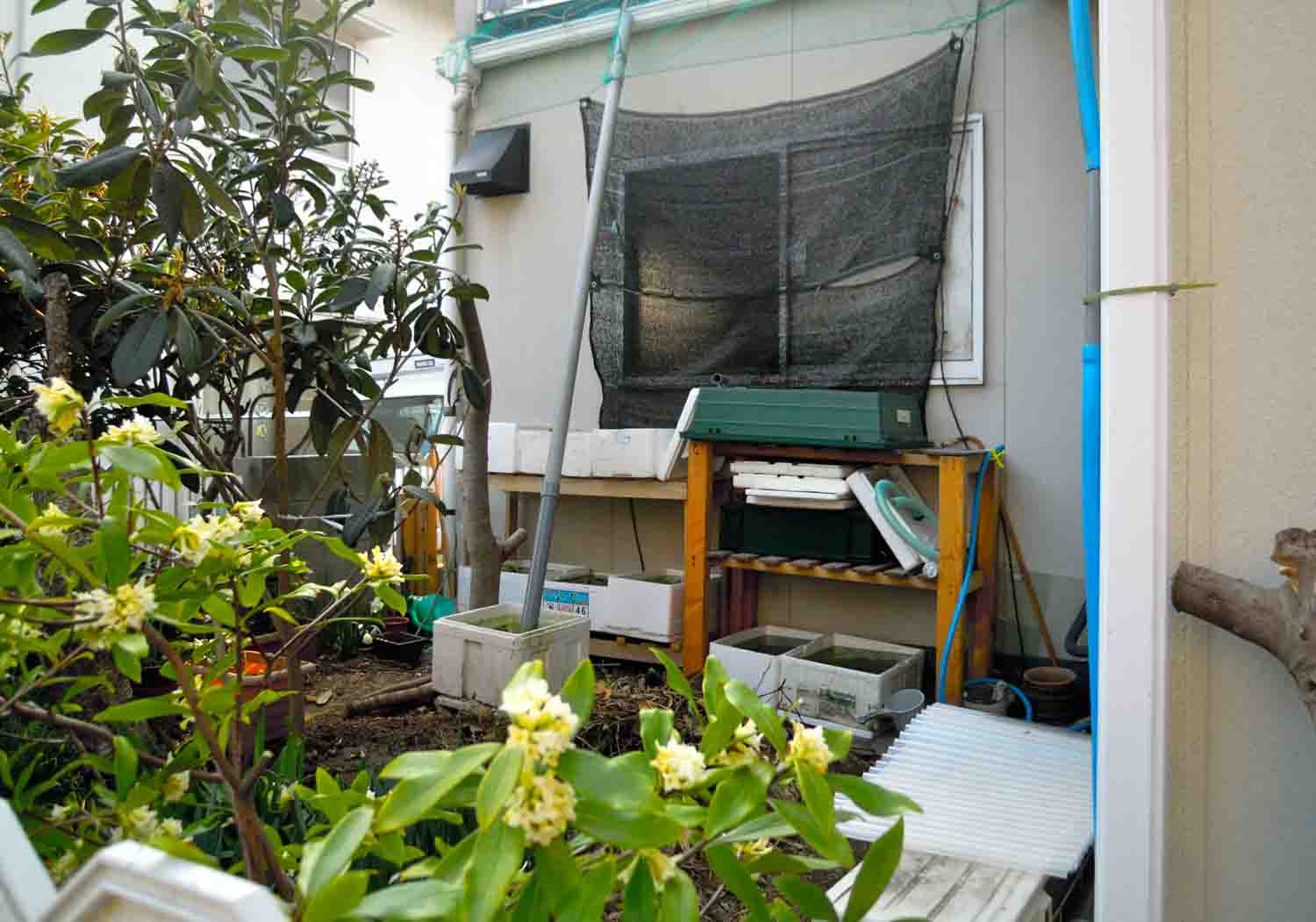南側の庭に置いてある棚にトロ舟がピッタリなのは良かったのですが、
