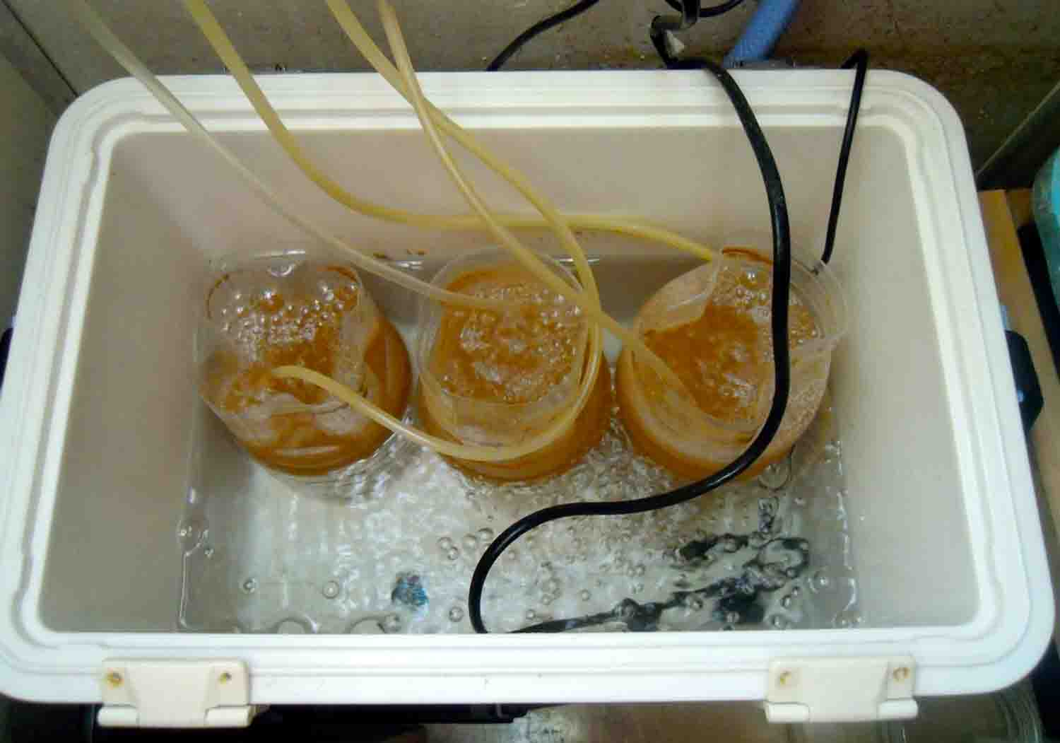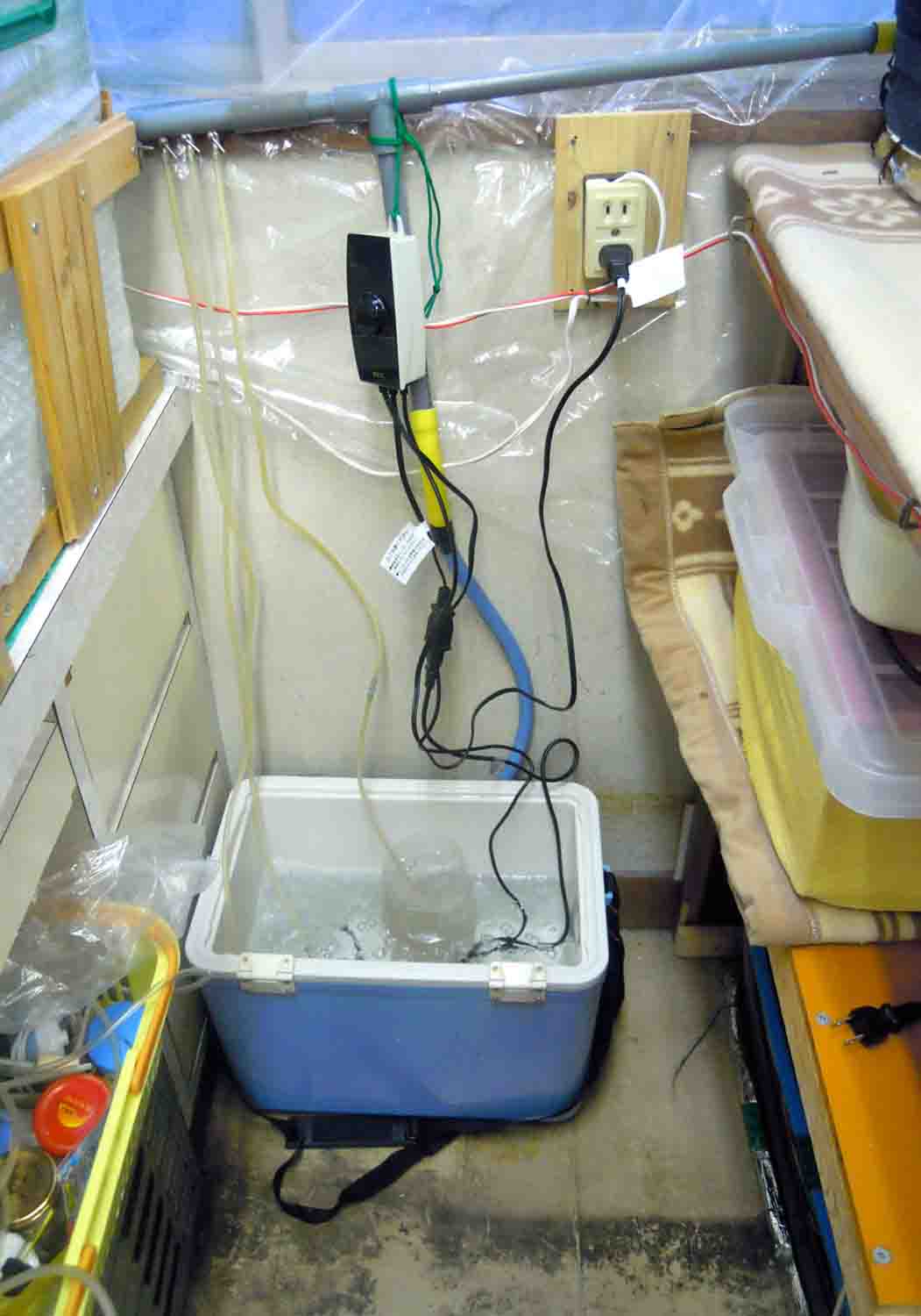 受精卵は用意してある中で一番大きい発泡スチロールに水道水を20℃にして入れました。