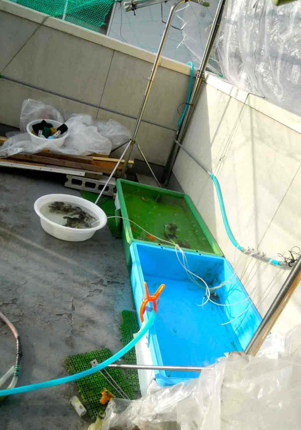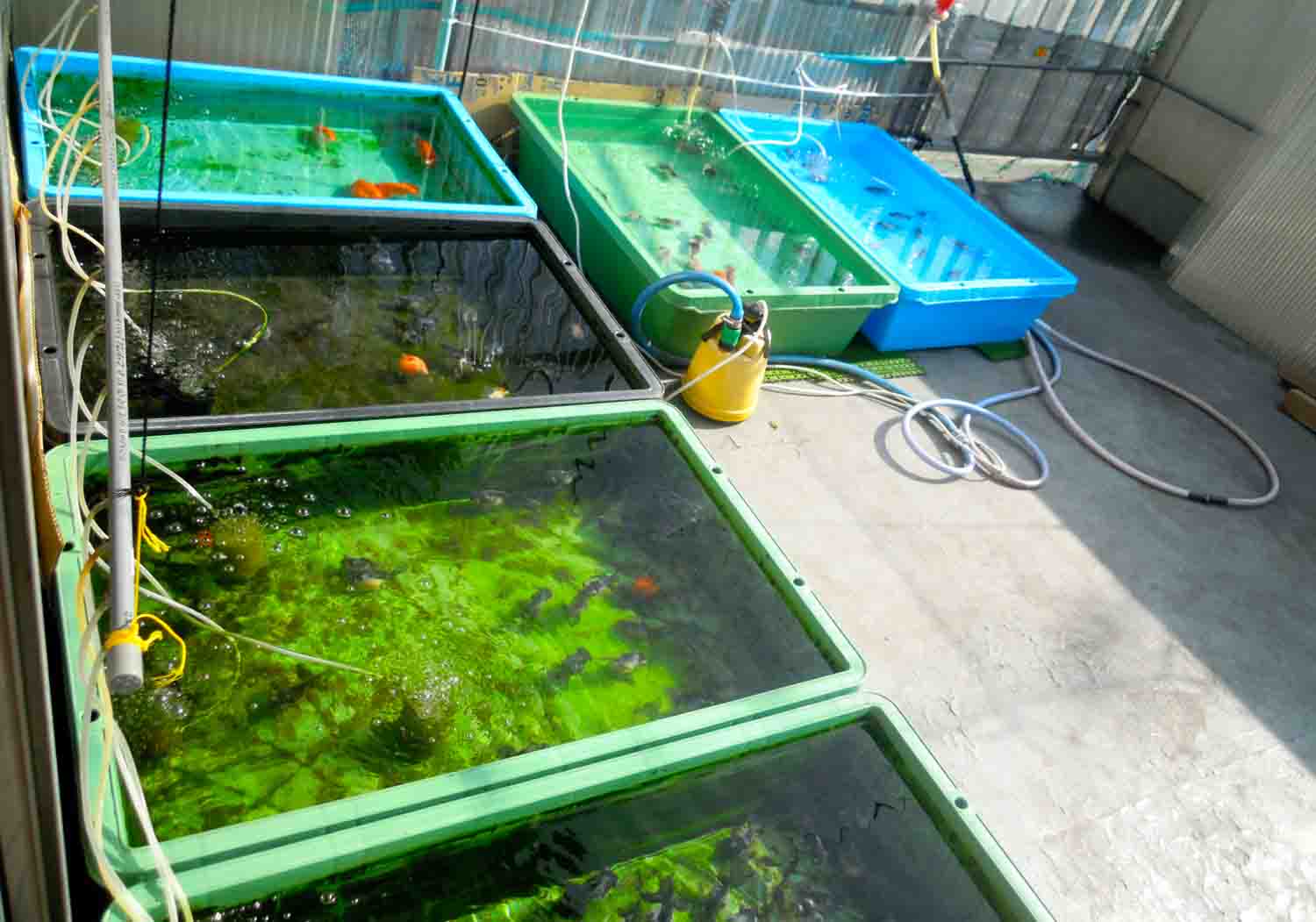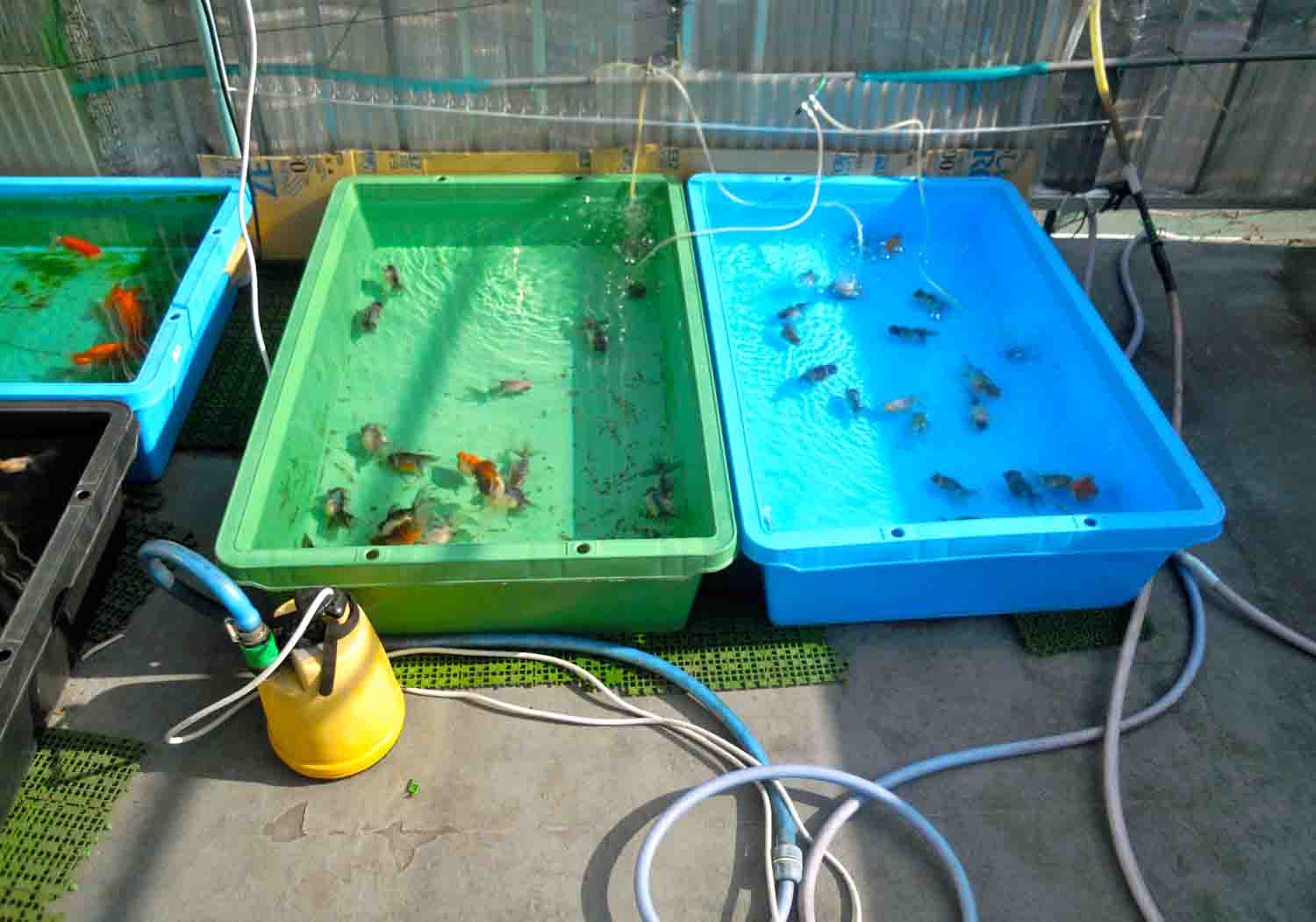 母は急いで魚を全部洗面器に取り全換えをしていました。