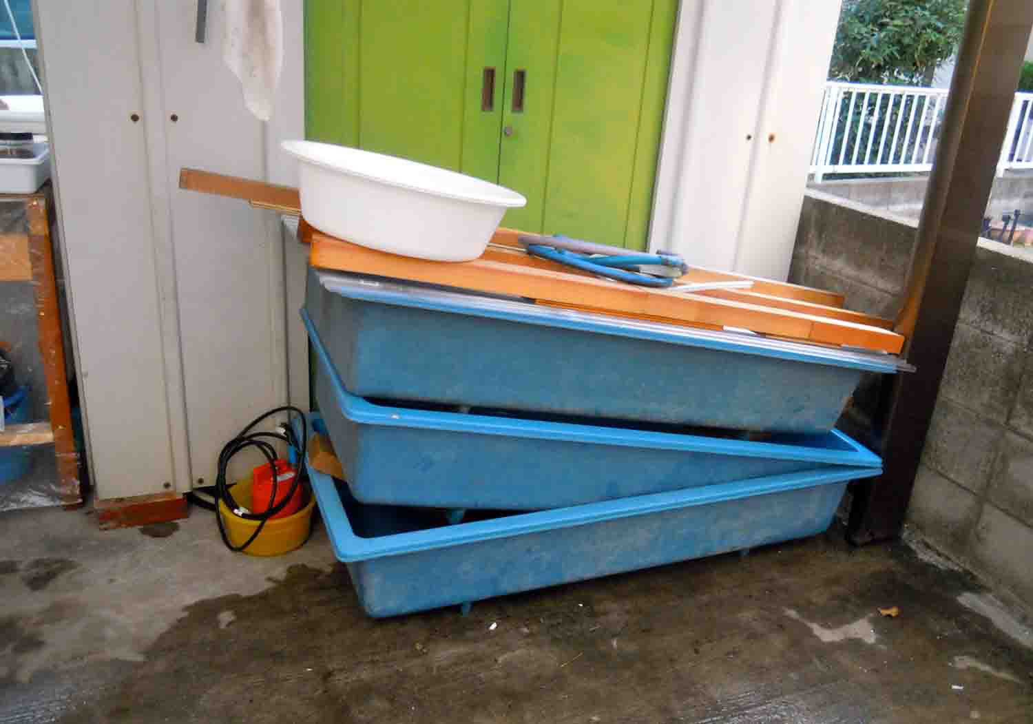 80Lのトロ舟を2つ出してきてベランダの東側にセッティングしました。
