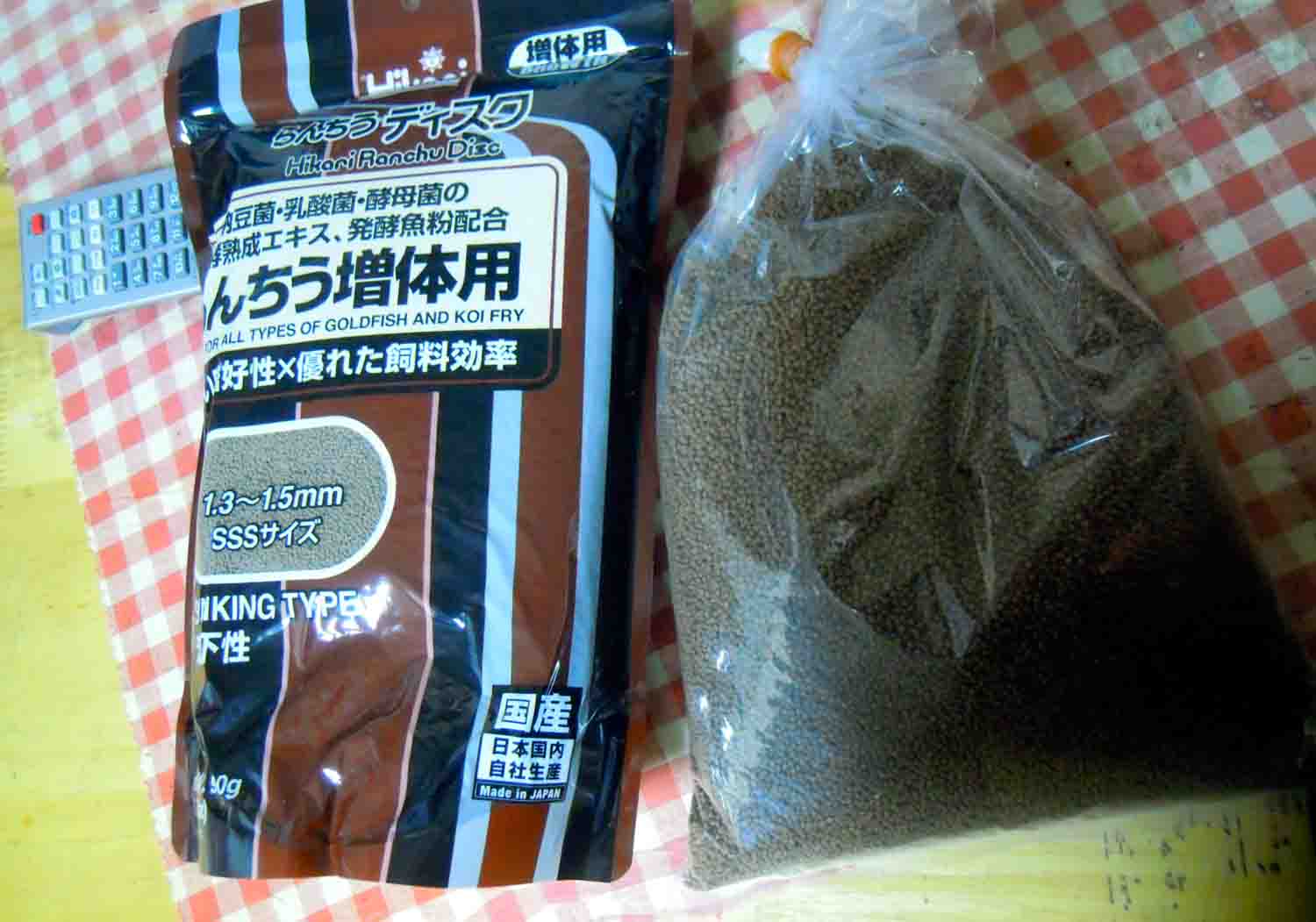 ちなみに今回はらんちうディスク増体用1袋と咲ひかり沈下用を、