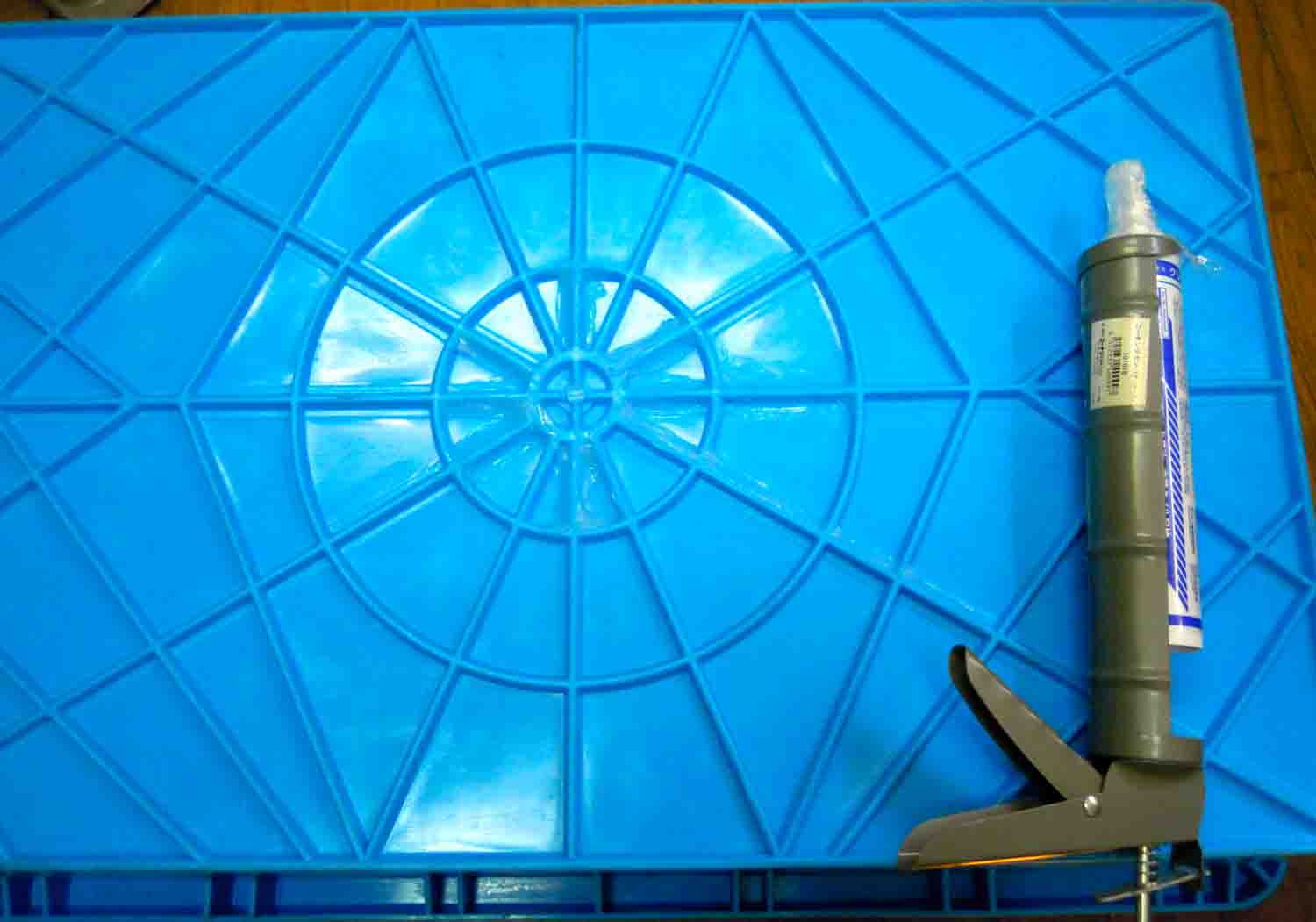 先日に母が仕事場で使っている青色のトロ舟の底に亀裂を発見していました。