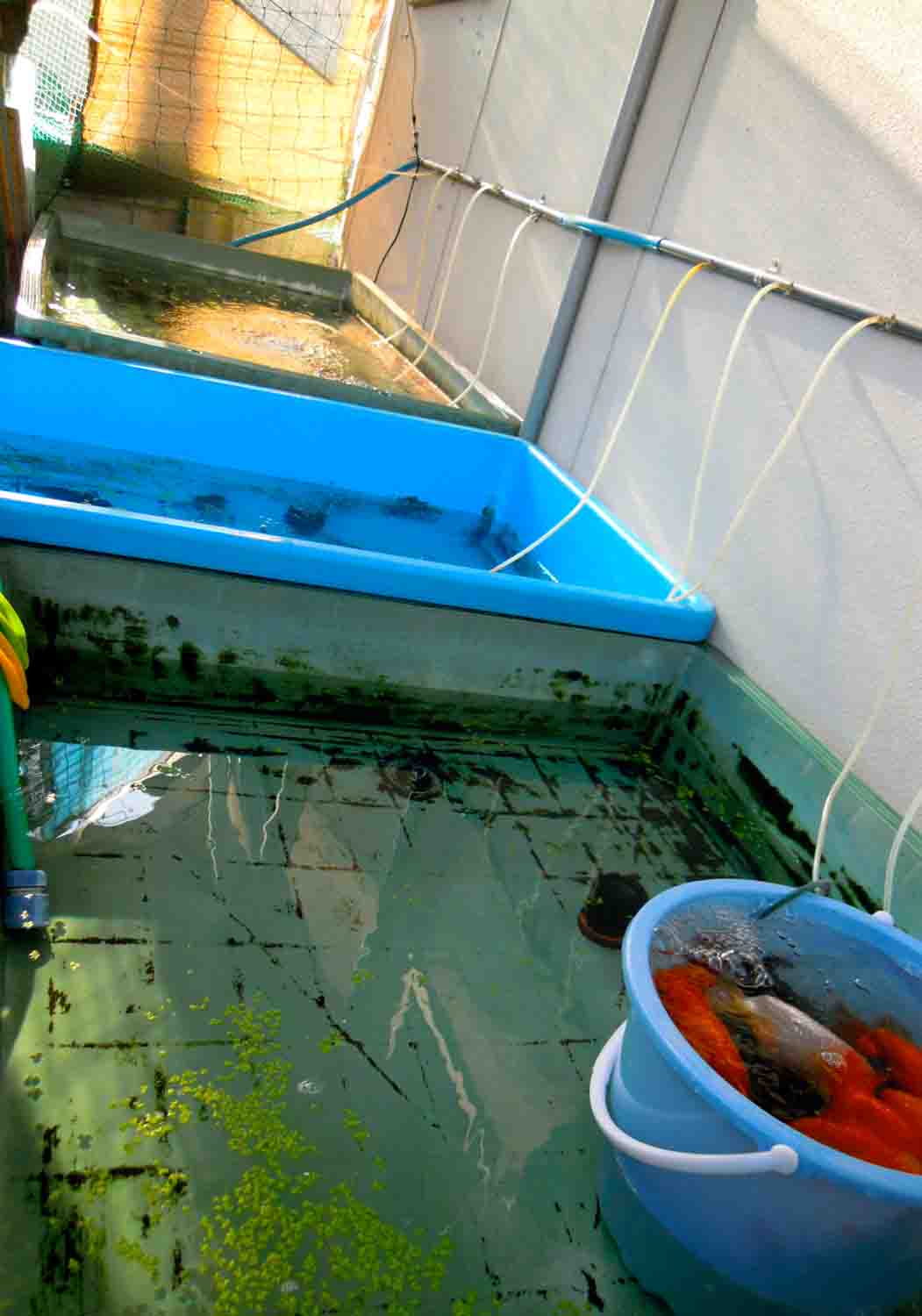 最近は一番エサをやらなければならない時期になり稚魚の数が過密で、