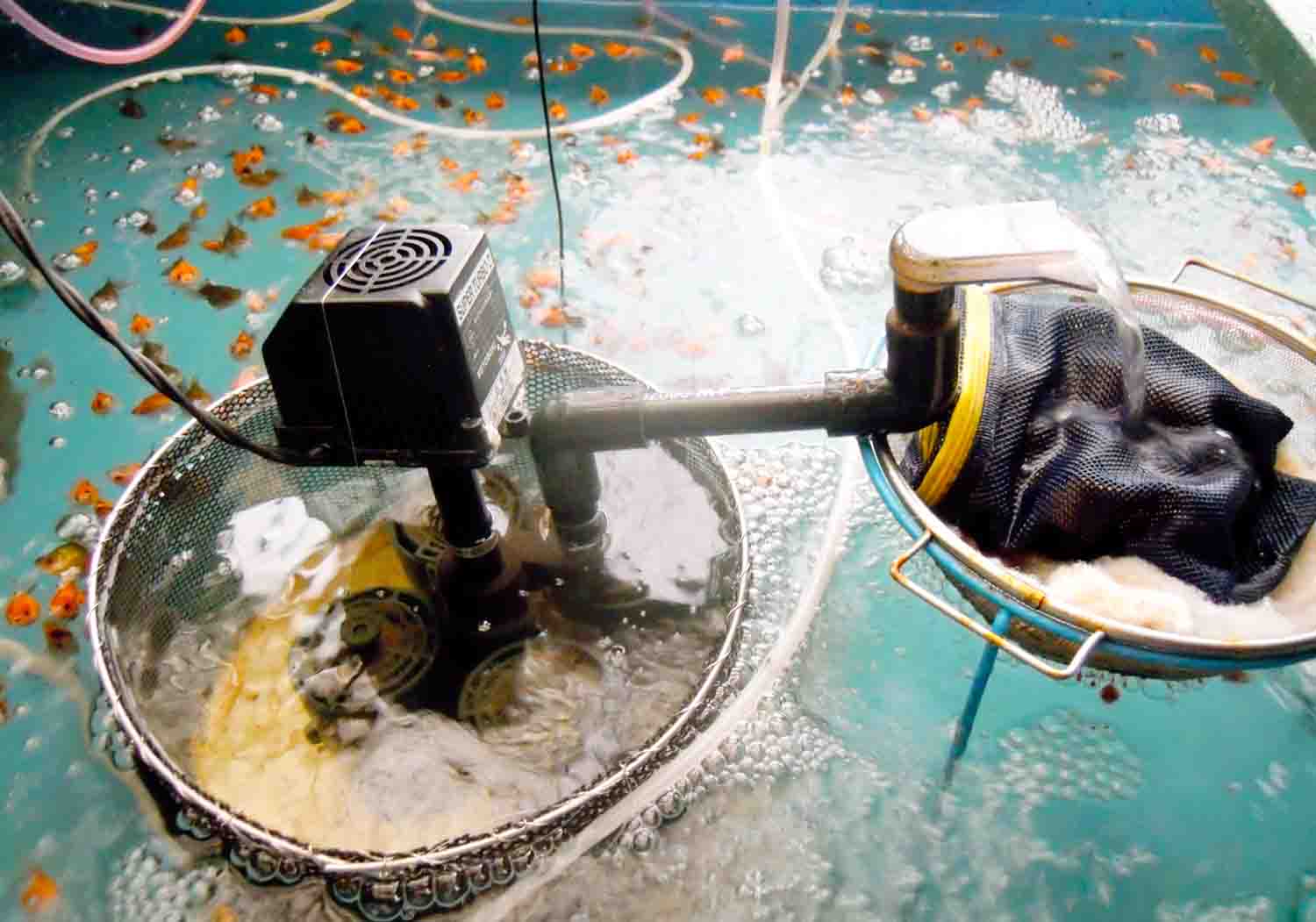 ピンポンパールには手作りの濾過器が飼育槽に入れてあったらしいです。