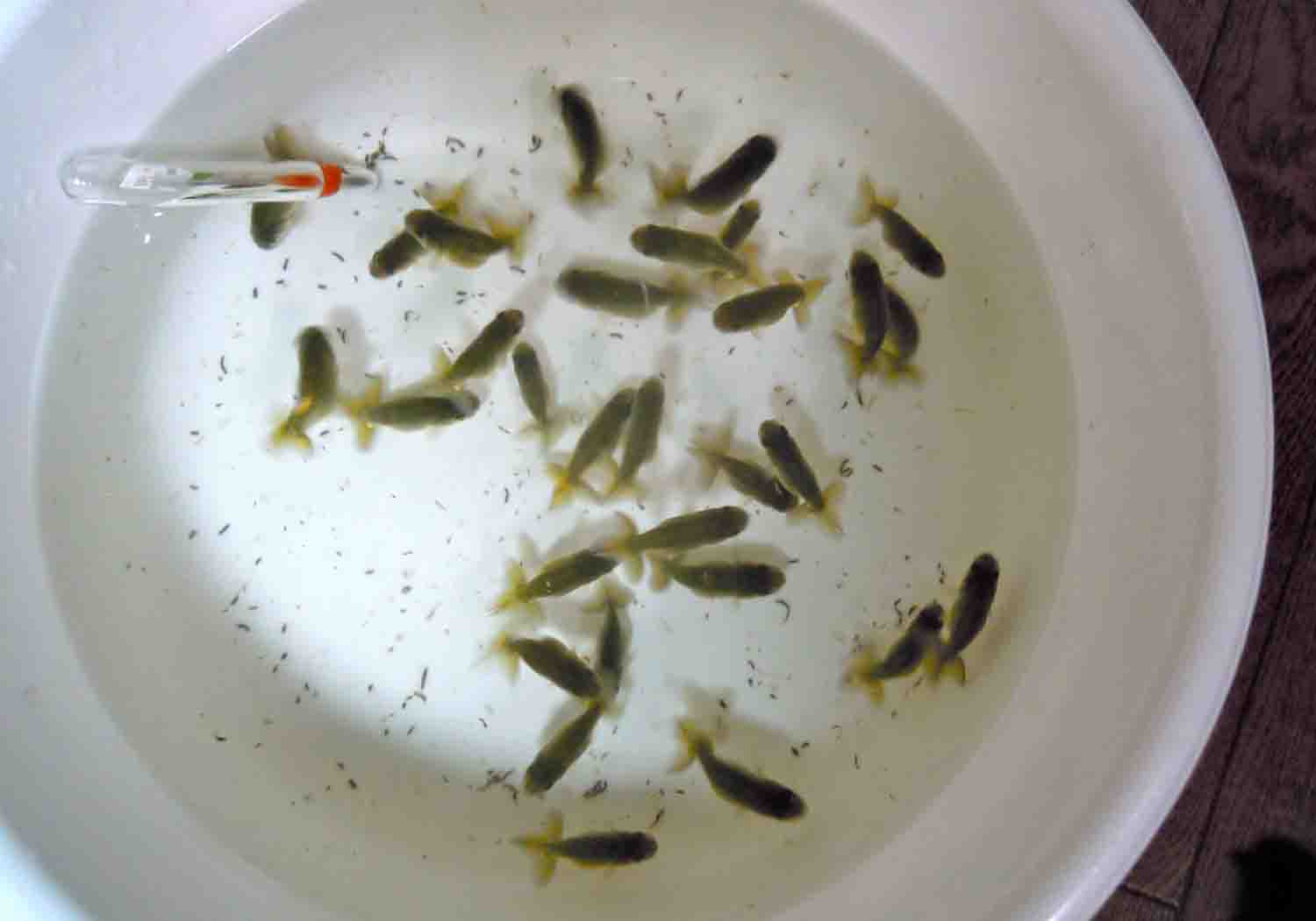 小さい方の稚魚は小さ過ぎるのでこれから大きく成長する過程でまだまだ、