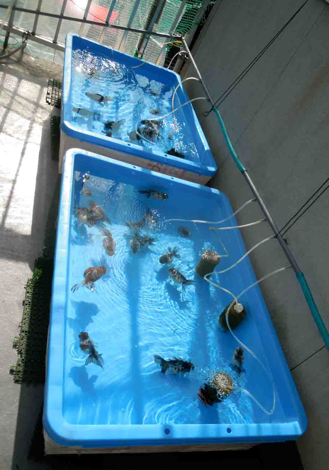 母は今の金魚飼育の決まりとして1つのトロ舟に3つのフィルターを、